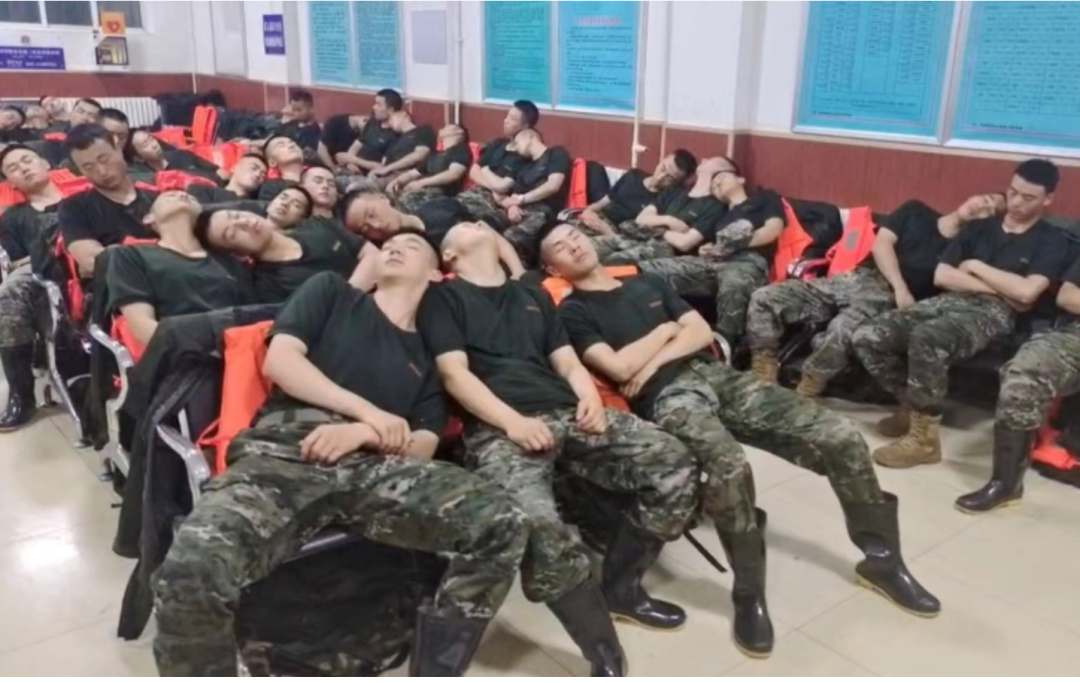 战士们一路跋涉,脚底都磨出了血泡,却舍不得使用医疗物资和瓶装水,他们想把物资留给被困的乘客和村民。