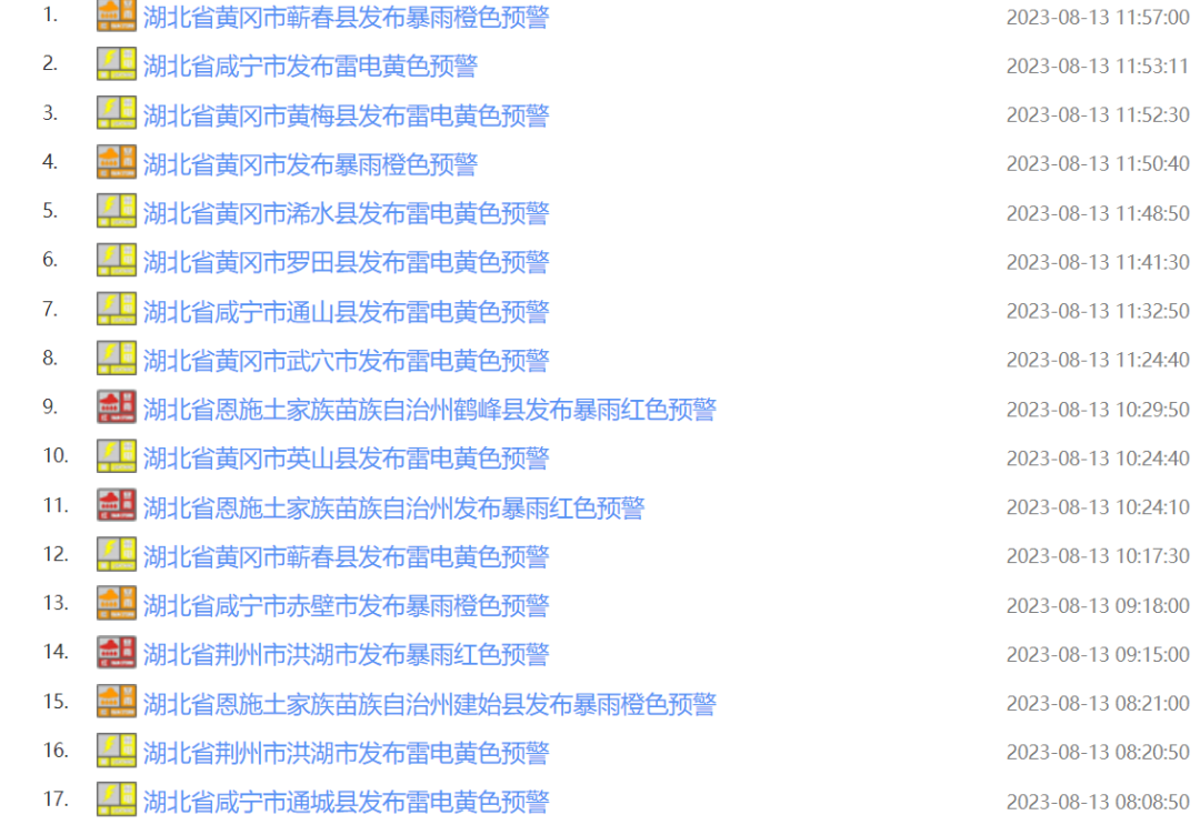 纷纷发布暴雨及雷电预警