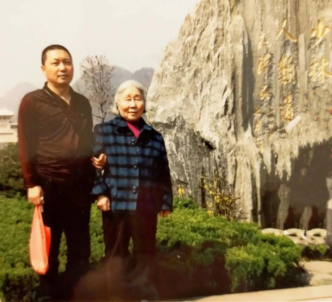 老韩与母亲旅游时的合影