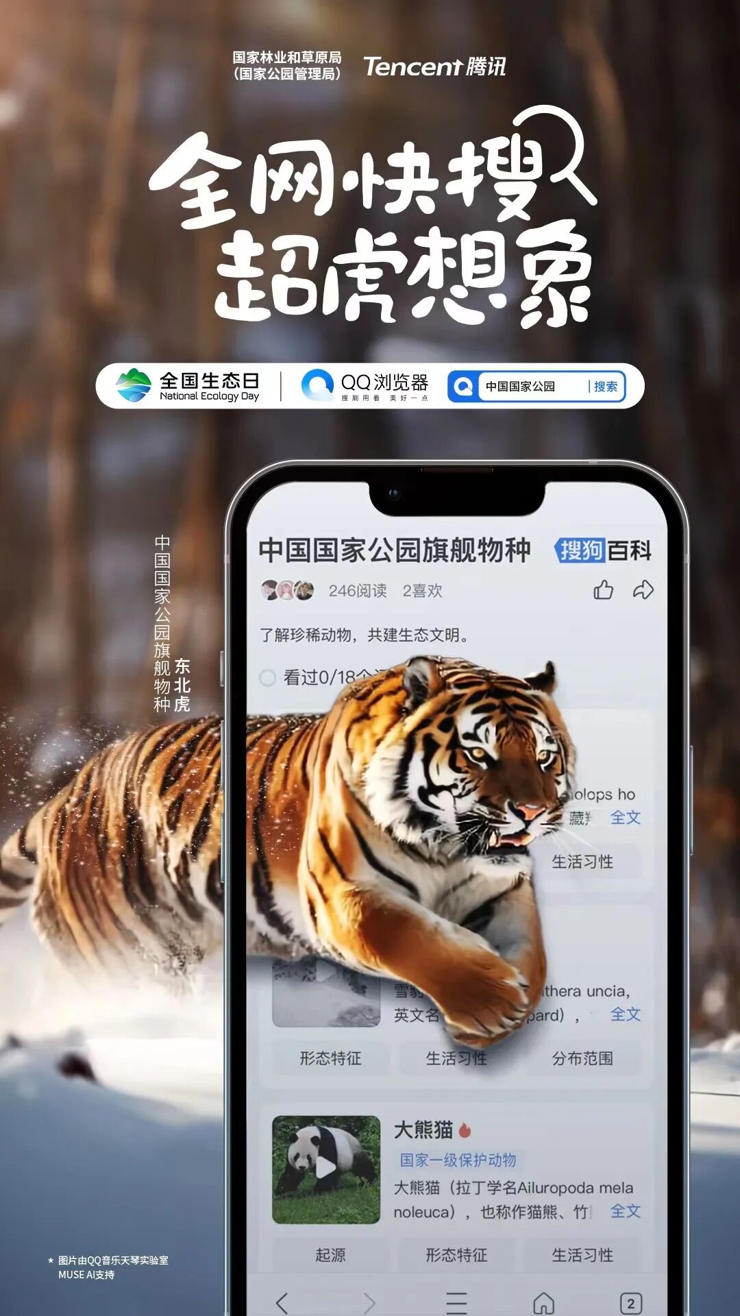 QQ音乐上线“乐听自然,余音‘鸟鸟’”专区,邀请音乐人和公众共建互动歌单,营造公众关爱自然的良好氛围;腾讯新闻开设“国家公园”专区,通过权威报道、物种故事等栏目科普中国国家公园知识;QQ浏览器推出权威认证的旗舰物种百科,通过“益起搜索”专区引导公众参与林草公益建设;《和平精英》打造“绿洲世界·大熊猫秘境”,吸引玩家沉浸式体验大熊猫保护工作。