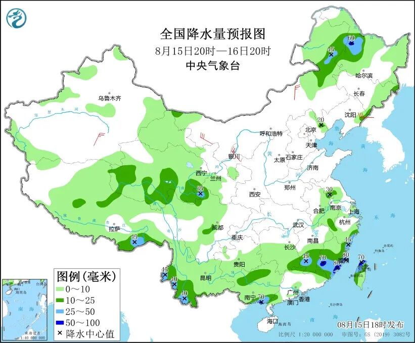 中央气象台预计,15日20时至16日20时,内蒙古东北部、黑龙江西部、西藏北部和东南部、青海南部和西部、甘肃西南部、浙江东南部、福建、江西南部、湖南南部、广东北部、广西南部、云南西部和南部、台湾岛等地部分地区有中到大雨,局部地区有暴雨。