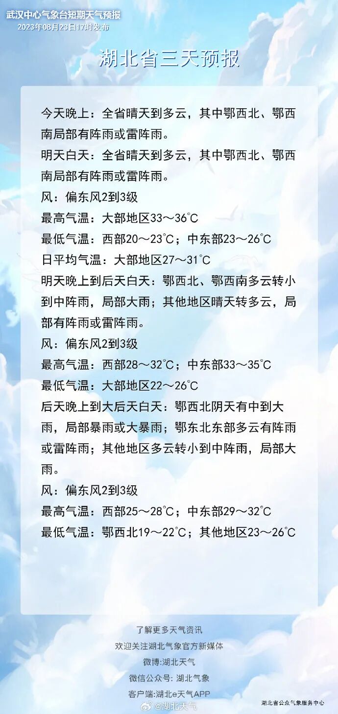 据湖北气象报道预计今天(24日)