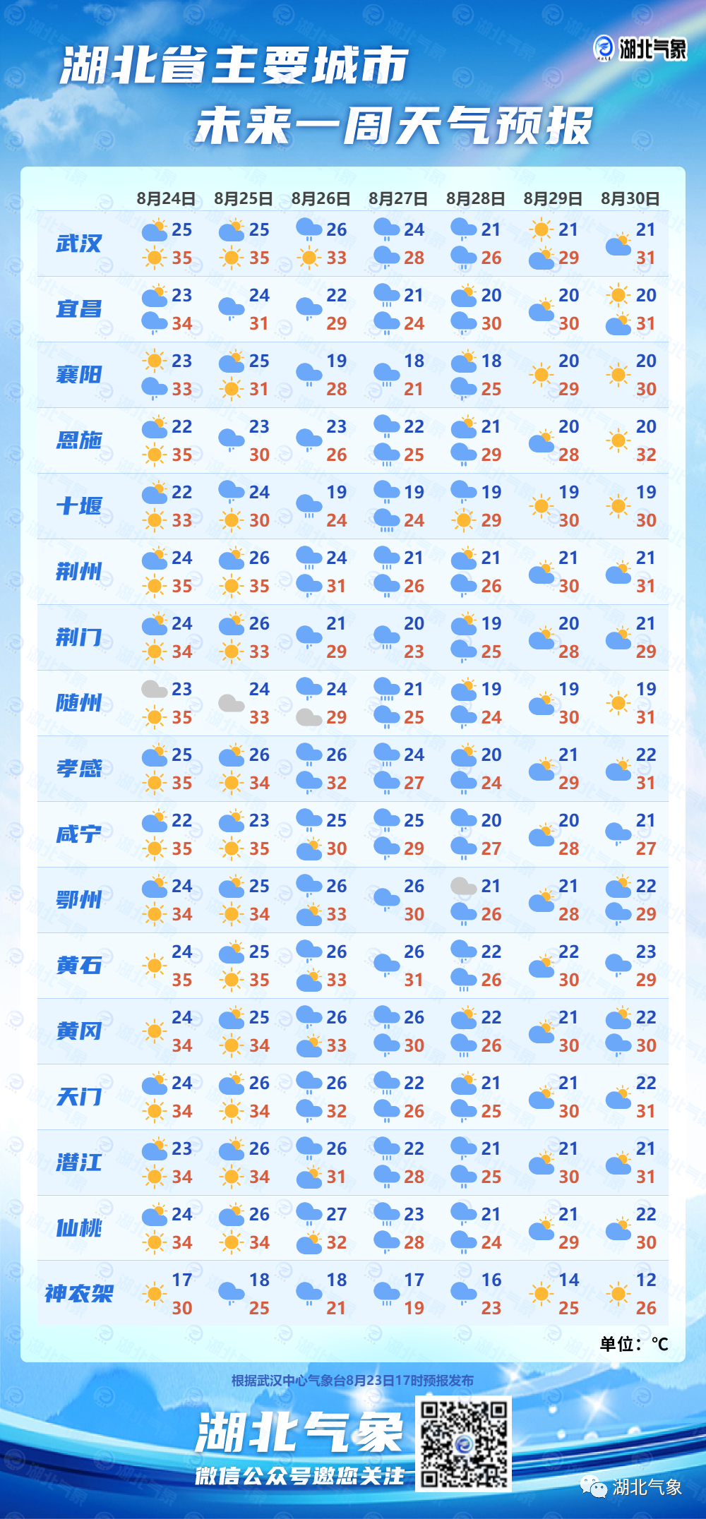 湖北省主要城市一周天气预报