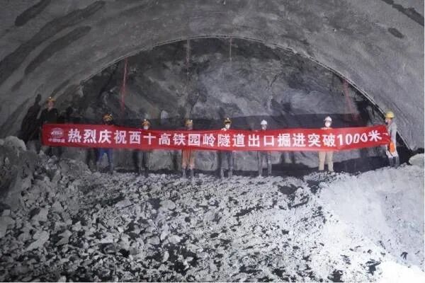 园岭隧道全长13117米,是西十高铁湖北段最长隧道,为全线控制性工程,地质主要以片岩、片岩夹灰岩、压碎岩、断层角砾岩为主。隧道洞身及斜井洞身依次通过6个断层,施工单位采用五线激光上墙、无门架台车、可视化端模、新型水压爆破技术、36m液压仰拱栈桥、智能衬砌台车、智能养护台车等一系列先进工艺工装,通过创新工艺、改良工装、精细管理等手段,实现施工全过程的进度提速、质量提档、安全提级,保证了各项工序高质、高量、高效完成。