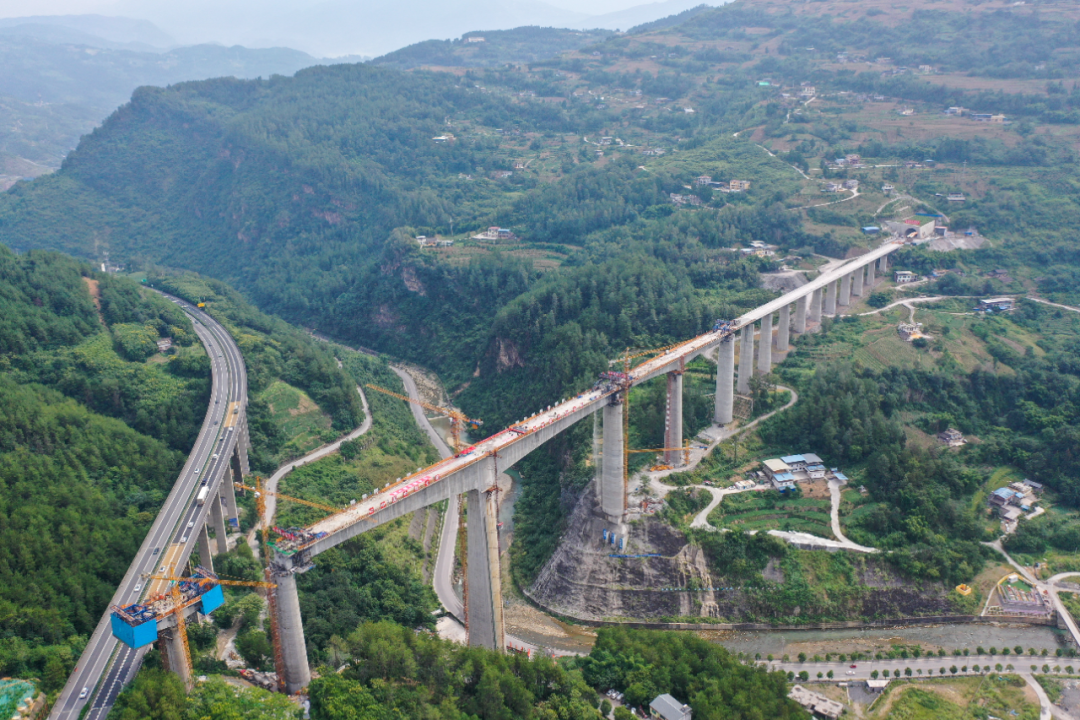 国内在建跨度最大T构高铁桥梁合龙。