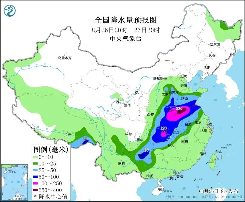 中央气象台26日18时继续发布暴雨黄色预警,预计26日20时至27日20时,山东西南部、河南中东部、安徽北部、江苏西北部、湖北南部、湖南北部等地部分地区有大暴雨,河南东部、安徽北部等地局地有特大暴雨。