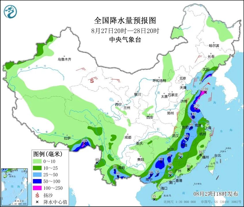 中央气象台27日18时继续发布暴雨黄色预警,预计27日20时至28日20时,辽宁东部、山东东部、江苏、安徽中南部、江西、湖南南部、广西中东部和南部、广东、云南南部、西藏东南部等地部分地区有大到暴雨,其中,山东半岛东部、辽宁东南部、西藏东南部等地局地有大暴雨。