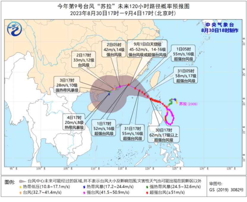 中央气象台30日18时继续发布台风橙色预警。今年第9号台风“苏拉”有可能于9月1日在广东福建沿海登陆。国家防总已针对上海、江苏、浙江、福建、广东、海南等省份启动防汛防台风四级应急响应,派出工作组分赴福建、广东协助指导防台风工作。详情