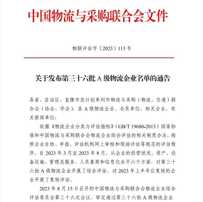 8月22日,中国物流与采购联合会发布第36批A级物流企业名单,我市17家物流企业入选,其中:湖北嘉楚物流等5家企业入选4A级物流企业、麻城一公里物流等12家企业入选3A级物流企业。