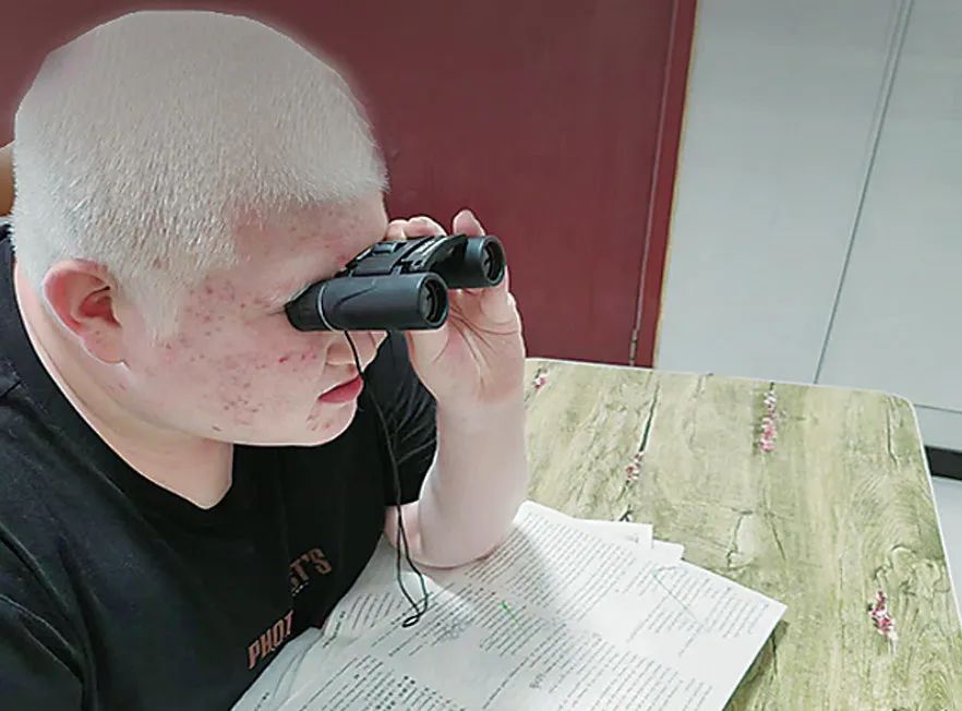 “买个望远镜看看,说不定能行!”高展坡突发奇想,从网上买了一个双筒望远镜。坐在教室第一排的他,终于看清了黑板上的字。