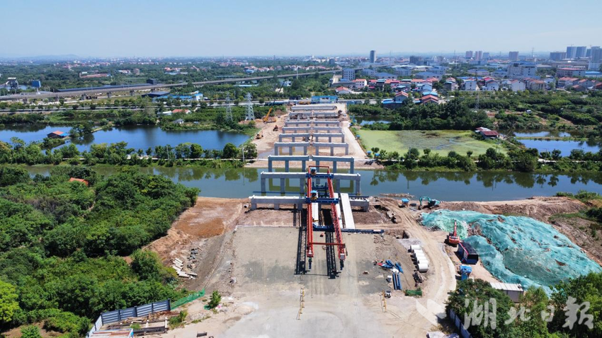 黄冈中环路跨三台河桥首榀预制箱梁架设顺利完成