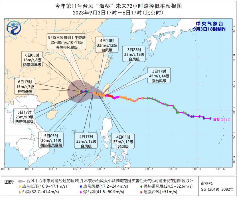 中央气象台3日18时继续发布台风红色预警,预计“海葵”将于5日凌晨到上午在粤闽交界附近沿海登陆,以后逐渐减弱。国家防总维持针对福建、广东的防汛防台风三级应急响应和针对浙江、广西、海南的防汛防台风四级应急响应。