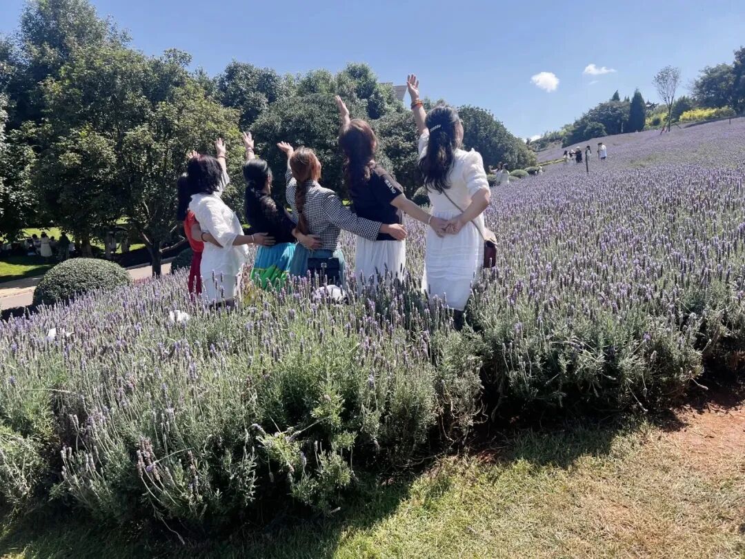 黄色的狼尾草、紫色的鼠尾草等植物构成的“七彩花海”