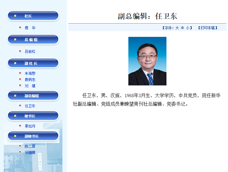 他也成为新华社目前唯一一位现任副总编辑。