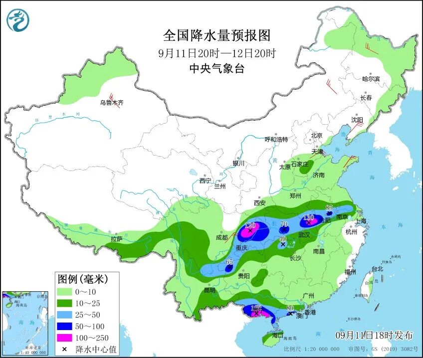 中央气象台11日18时继续发布暴雨黄色预警,预计11日20时至12日20时,四川东北部、重庆大部、贵州西北部、云南东北部以及河南东南部、湖北大部、湖南北部、安徽中部、江苏南部和广西南部、广东西南部、海南岛北部等地的部分地区有大到暴雨,其中,四川东北部、重庆西北部、河南东南部、湖北东北部及广西沿海等地部分地区有大暴雨。
