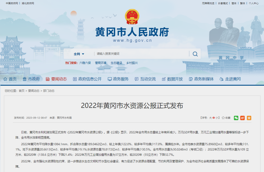 2022年黄冈市水资源公报正式发布