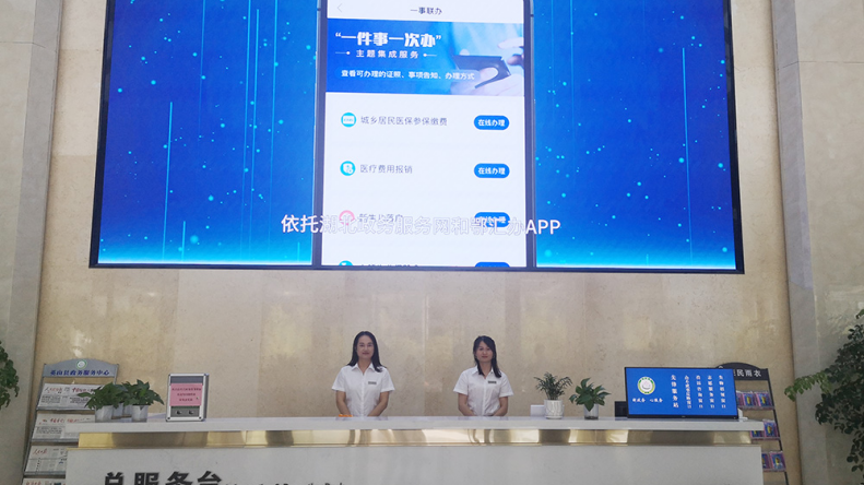 英山县新政务服务中心四周没有围栏,不设门禁,居民办事自由出入,打造一个不设围栏的“市民之家”。