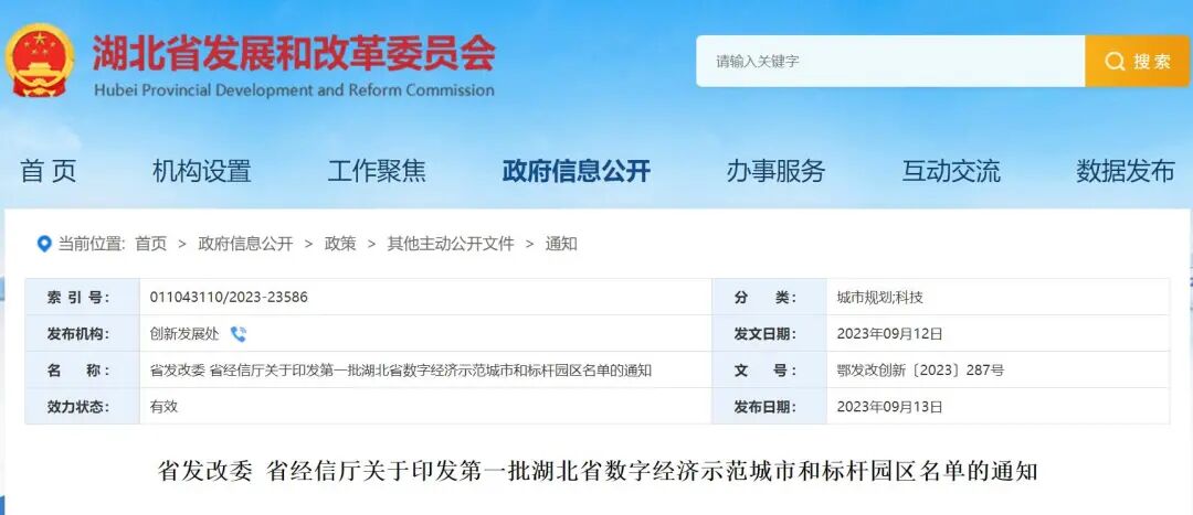 湖北省发展和改革委员会湖北省经济和信息化厅2023年9月12日