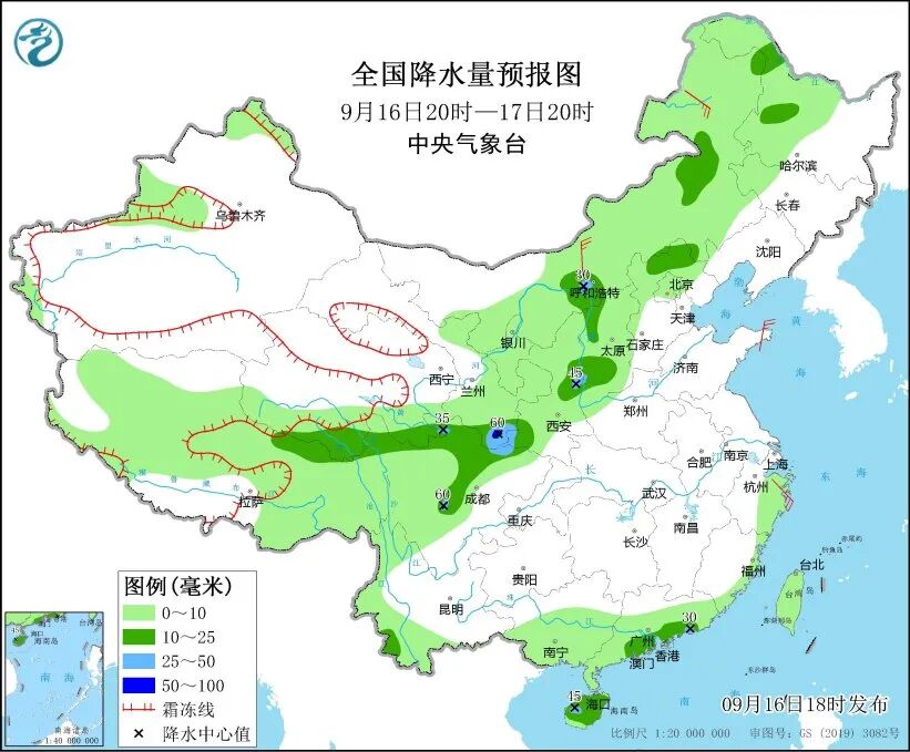 中央气象台预计,16日20时至17日20时,内蒙古中部和东北部、黑龙江西部、西藏东北部、青海南部、甘肃南部、陕西北部和南部、山西西部、河北北部、四川盆地、川西高原北部、云南西南部、广东中部和东南部沿海、海南岛等地部分地区有中到大雨,部分地区有暴雨。