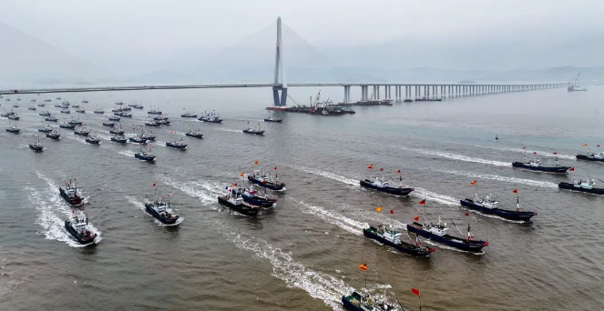 16日,2023年全国海洋伏季休渔期全面结束,渔民出海开捕。