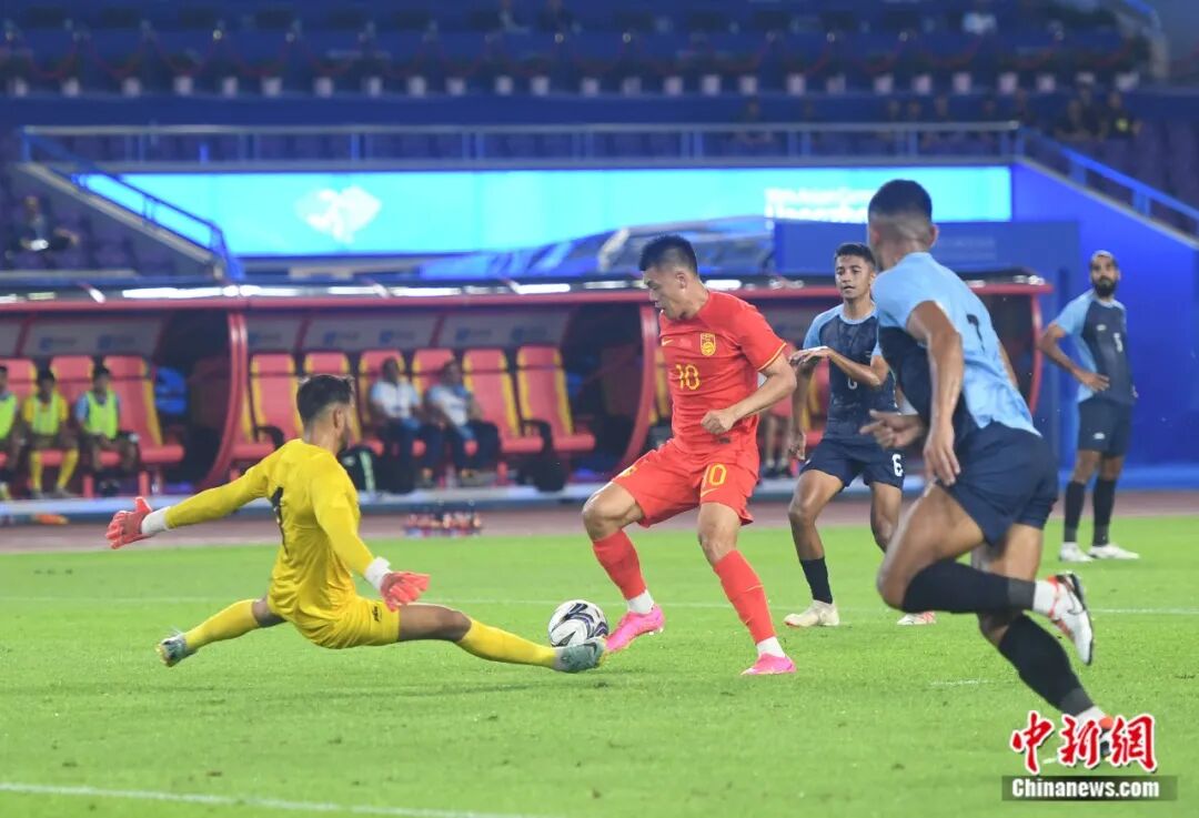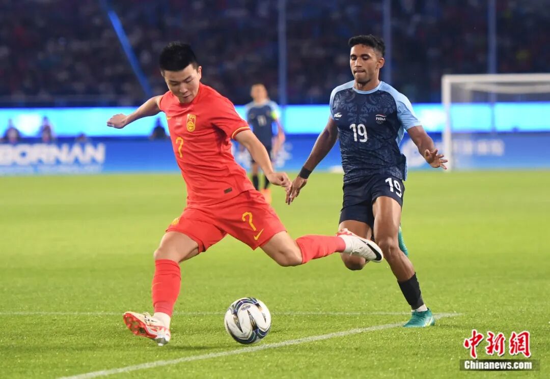 19日晚,在杭州黄龙体育中心体育场进行的杭州亚运会男足小组赛首轮比赛中,中国队以5:1战胜印度队。 国足亚运队在比赛中。记者 王刚 摄 国足亚运队在比赛中。记者 王刚 摄 陶强龙在比赛中。记者 王刚 摄 来源:新华社