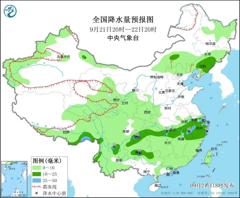 中央气象台预计,21日20时至22日20时,内蒙古中部偏东地区、辽宁中东部、吉林东南部、西藏东南部、四川南部、长江中下游沿江地区、贵州北部和南部、广西北部等地部分地区有中雨,局地有大雨。