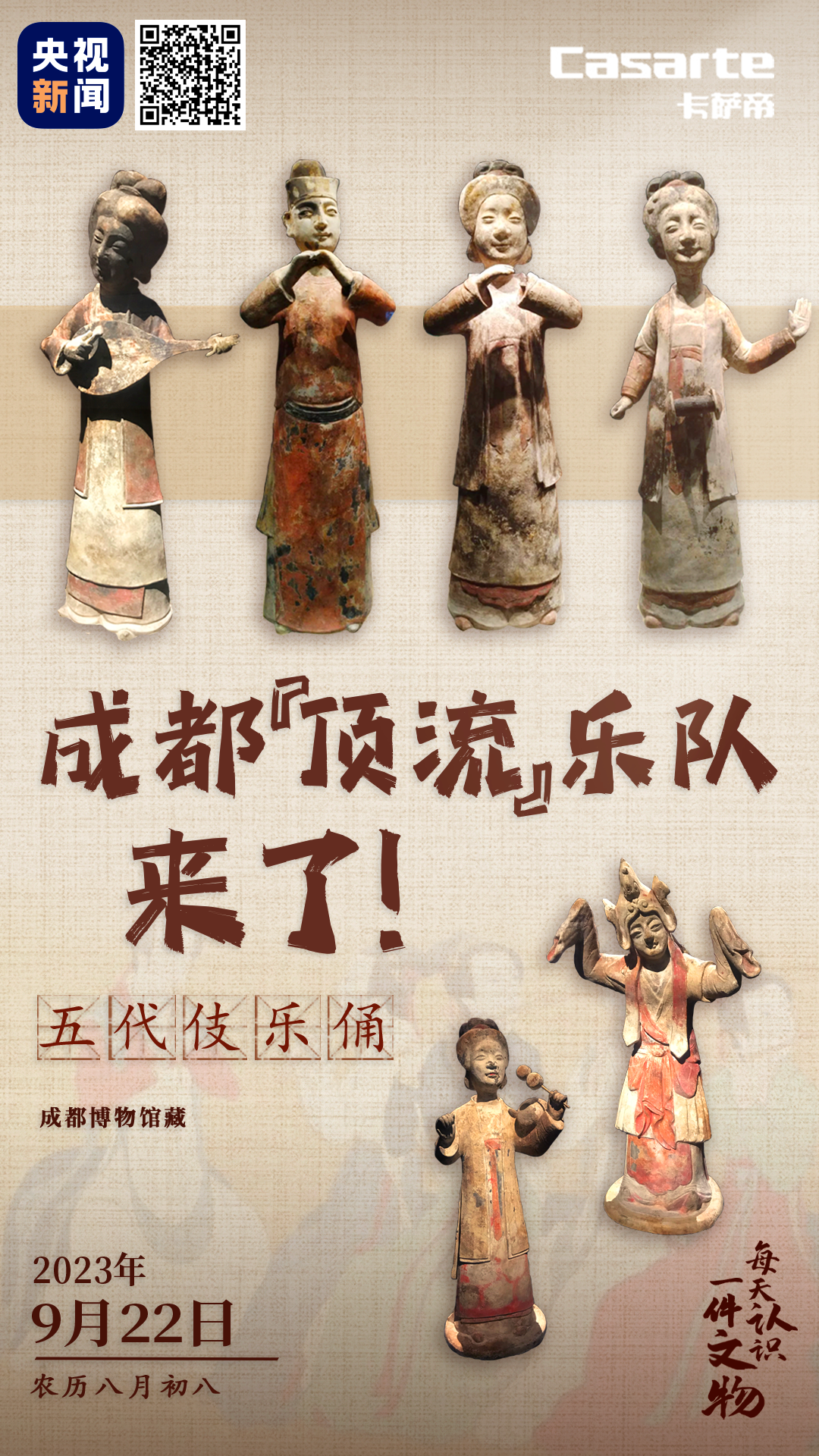 五代伎乐俑的拥有者名叫赵廷隐,是后蜀的开国功臣。整套伎乐俑神态各异、惟妙惟肖,手上拿着各种乐器,是迄今西南地区发现的最精美的陶质伎乐俑组合~