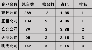 “企业榜”是出租车公司服务质量的排行榜。