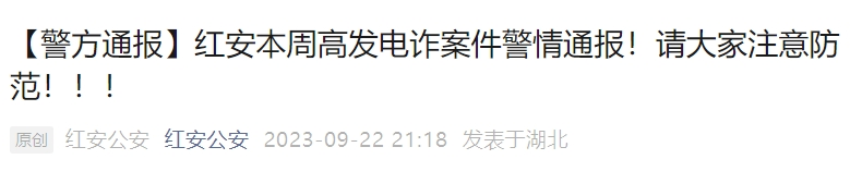 红安公安发布最新反诈周报