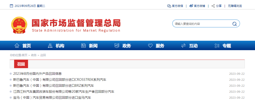 日前,斯巴鲁汽车(中国)有限公司根据《缺陷汽车产品召回管理条例》和《缺陷汽车产品召回管理条例实施办法》的要求,向国家市场监督管理总局备案了召回计划。自2023年10月8日起,召回2023年5月19日至2023年6月6日期间生产的部分进口CROSSTREK系列汽车,共计447辆。