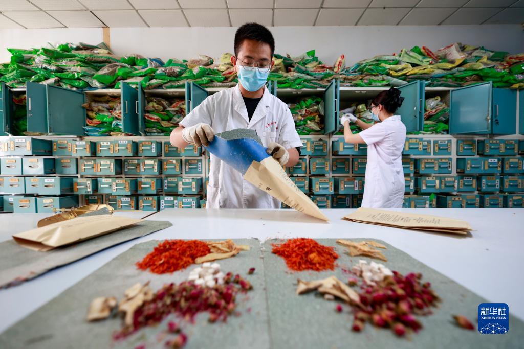 9月30日,河北省唐山市丰南区中医医院的医师在抓配中药。