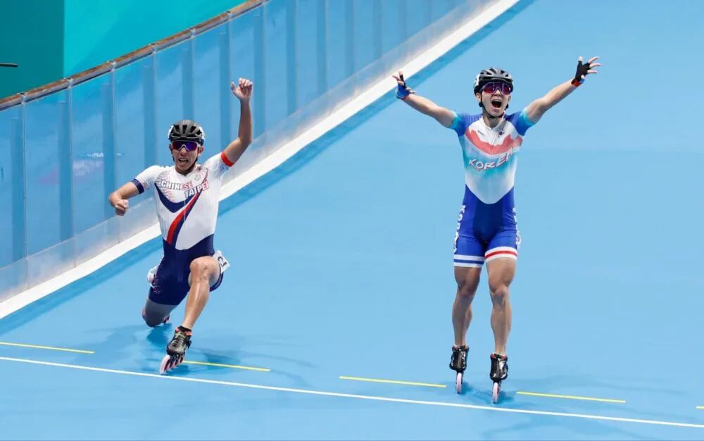 轮滑赛场罕见一幕:韩国队提前庆祝 中国台北极限反超2日的杭州亚运会轮滑赛场上演了戏剧性一幕:韩国队以为胜利在握而提前庆祝,结果被中国台北队以0.01秒极限反超,丢掉了男子速度轮滑3000米接力金牌。