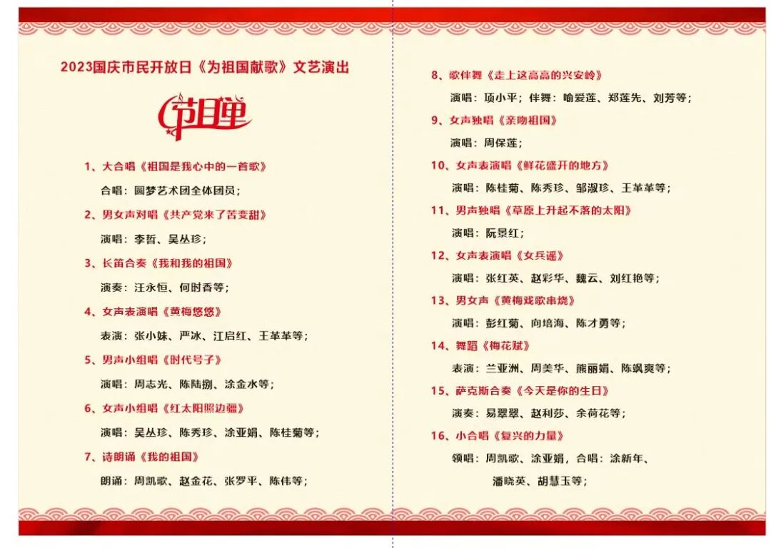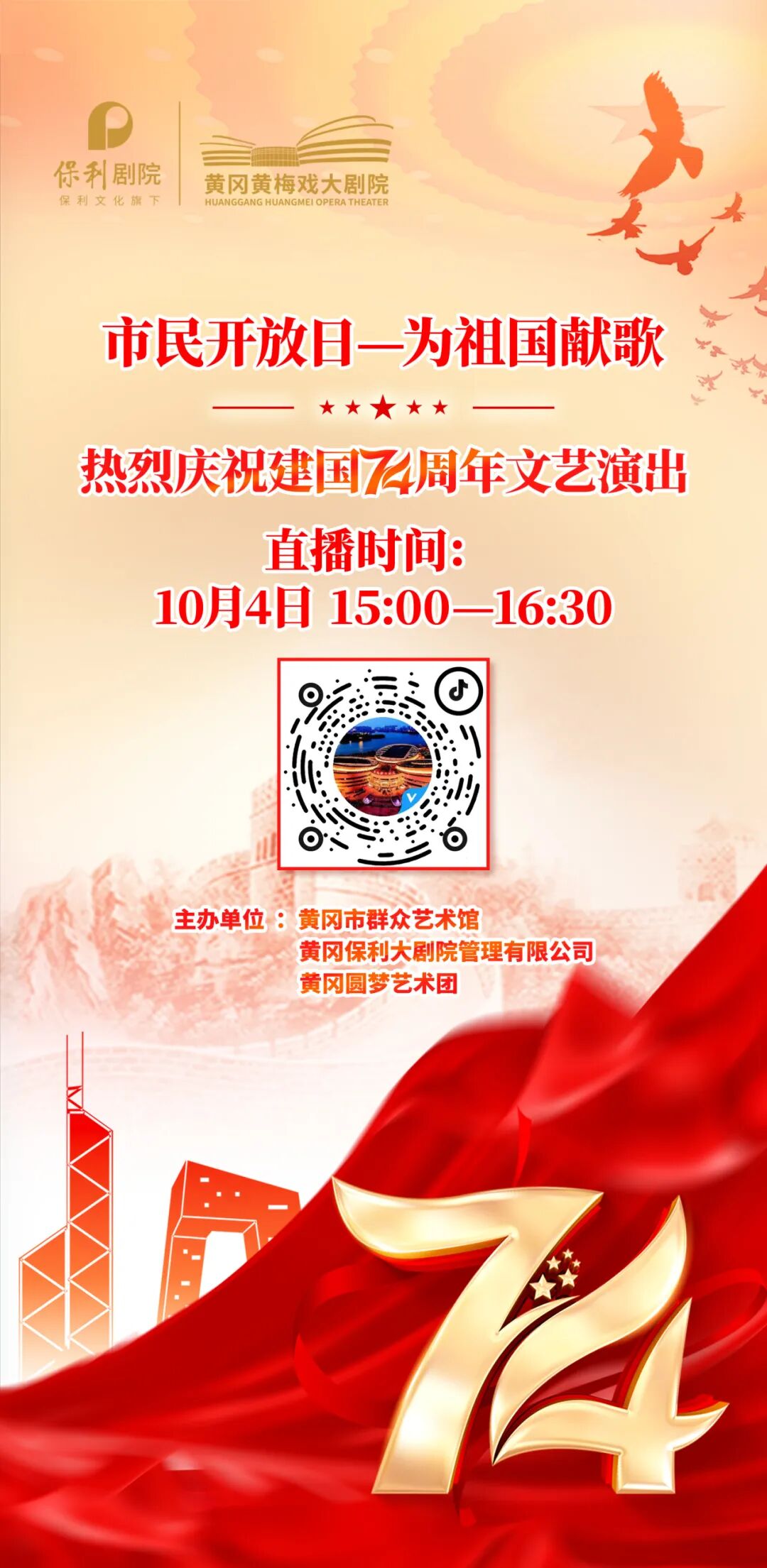 15:00-16:30《市民开放日—为祖国献歌,热烈庆祝建国74周年文艺演出》