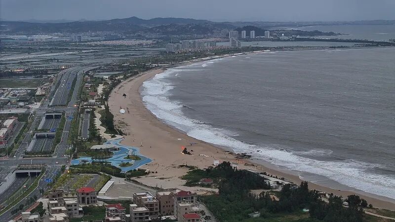 △10月5日,福建泉州,受“小犬”和冷空气影响,玉沙湾海域沿海风大浪急。