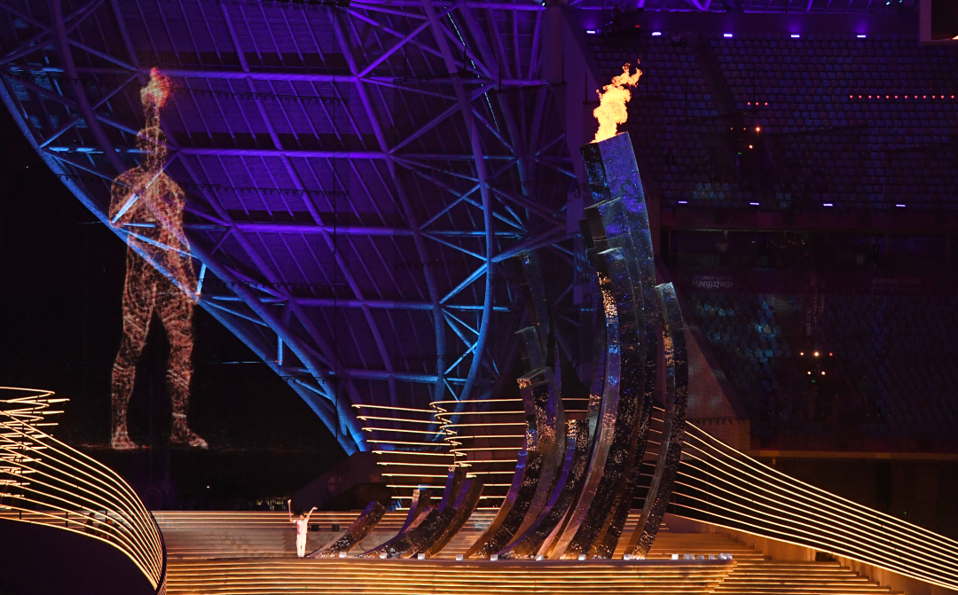 在杭州亚运会闭幕式主创团队执行导演秦一文看来,虚拟技术不仅是完成视觉表达、空间构建,更重要的是通过技术与自然融合、与场地呼应、与人情互动,让所有人都能够看到一场自然与科技共荣、运动与时代共鸣、人文与情感共生的闭幕式表演。