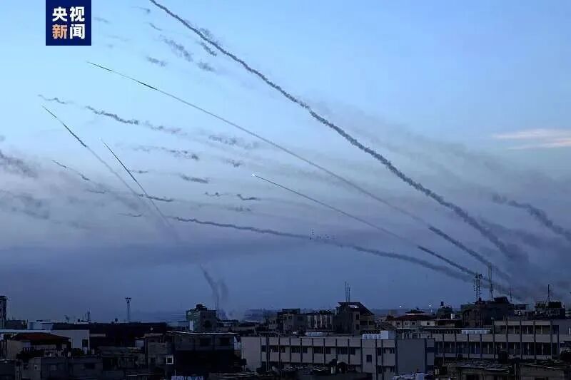 △当地时间10月7日,火箭弹从加沙地区射向以色列。