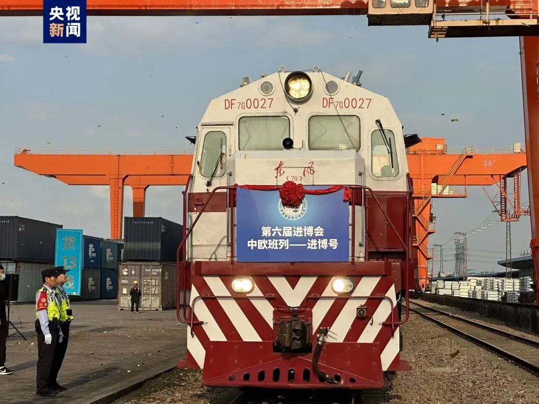 11日,装载第六届中国国际进口博览会参展展品的首列“中欧班列—进博号”列车抵达上海,货物总价值超过1600万欧元。