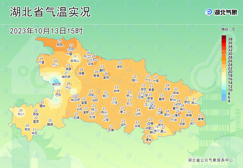 最高气温:鄂西南17~21℃;其他地区22~24℃