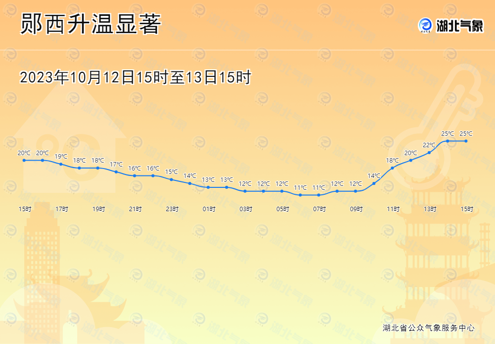 鄂西北西部、鄂西南阴天有小雨;其他地区多云。