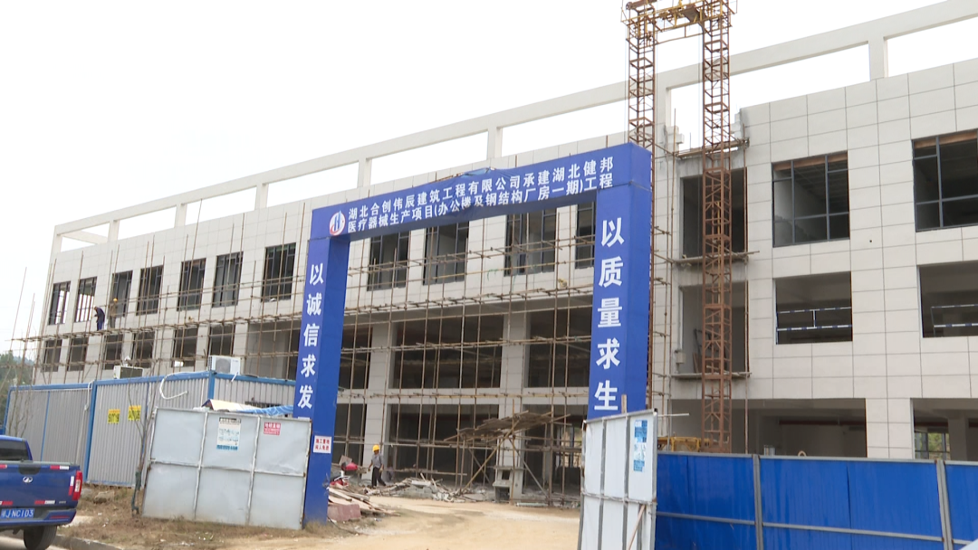 湖北健邦医疗科技有限公司是英山县一家专门从事血压计臂带(腕带)设计、开发、生产、销售的高科技企业。为扩大生产规模,今年3月份,该公司征地15亩建设血压计配件生产基地。目前,办公楼已进入内外装修阶段,钢架厂房正在进行框架施工,预计10月底可以全部完工。