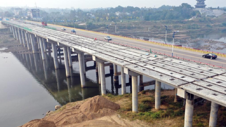 日前,浠水县宝塔大桥改造项目全线箱梁架设圆满完成,即将进入桥面和路面施工阶段。升级改造后桥梁宽度由原来的15米拓宽为31米,双向四车道增加为双向六车道通行,将有效提升S343省道的通行能力,促使浠水北城新区与高铁新区深度融合。