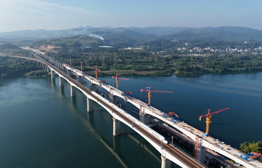 10月15日凌晨,位于广西柳州市的湘桂铁路柳江双线特大桥连续梁顺利合龙,为柳州铁路枢纽扩能改造工程实现今年底竣工开通提供保障。