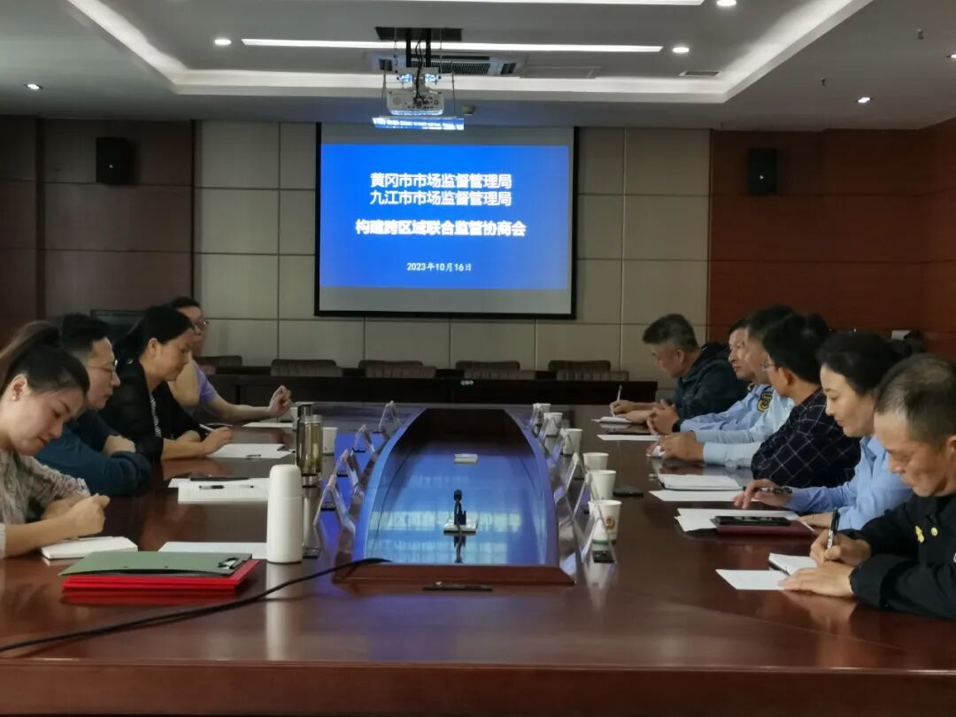 会上,黄冈市市场监管局与九江市市场监管局双方开展信用监管工作合作交流座谈,两地市场监管局秉持“信息互通、问题互商、力量互借、优势互补”的原则,就“双随机、一公开”等工作,建立联合会商机制、开展跨区域联合执法行动、强化失信惩戒、守信激励等信用监管方面跨区域协作达成共识。