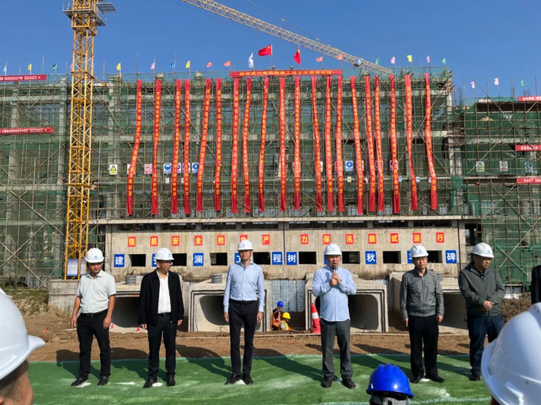 秋风飒爽,炮鼓催征。10月18日上午,武穴泵站新建工程经过386天紧张有序的建设,按既定的时间节点,于今天上午9时38分,完成主体建筑物封顶,标志着该项目进入新的实施阶段。水利和湖泊局党组书记、局长郭丹东,党组成员、副局长冯志勇,相关股室、泵站负责人,街道办领导以及项目监理、设计、施工方负责人参加封顶仪式。