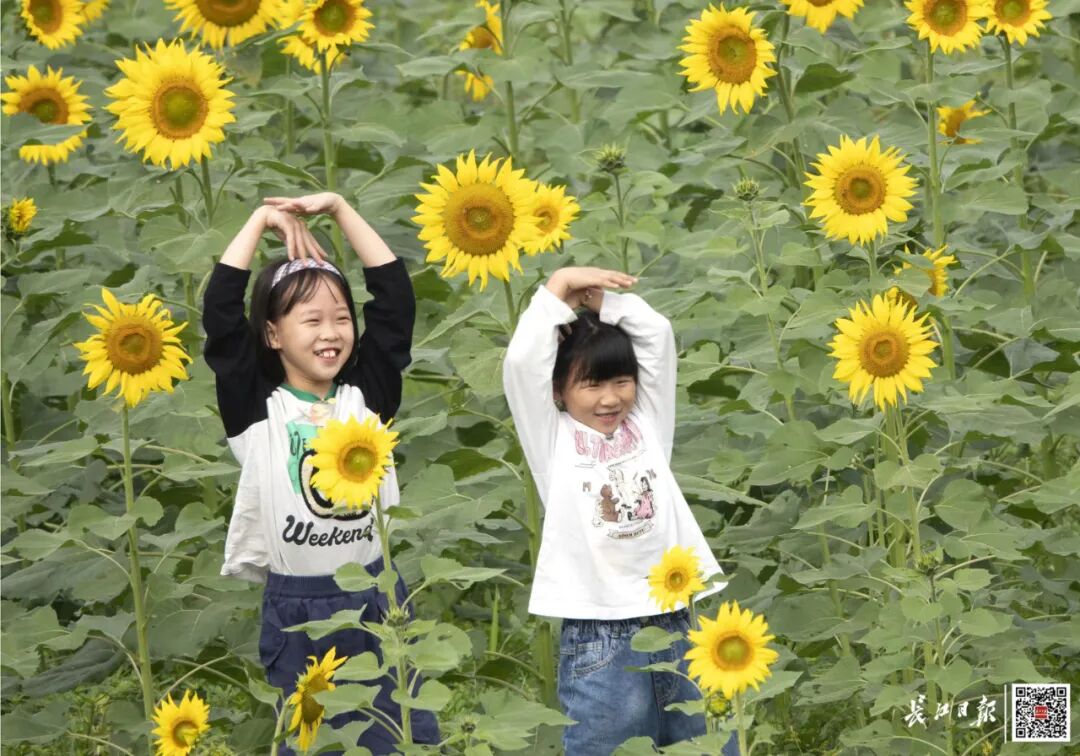 “小朋友们,你们知道向日葵花里的黑色小颗粒是什么吗?”“是小虫子!”“是瓜子仁!”在向日葵花海旁,来自武汉东湖高新技术开发区弘文幼儿园的老师正在给孩子们上一堂生动的自然课。弘文幼儿园的老师告诉记者,马鞍山森林公园的自然景观和户外设施会根据季节进行调整,园部经常在此开展《森林课程》,让孩子们更直观地了解大自然。