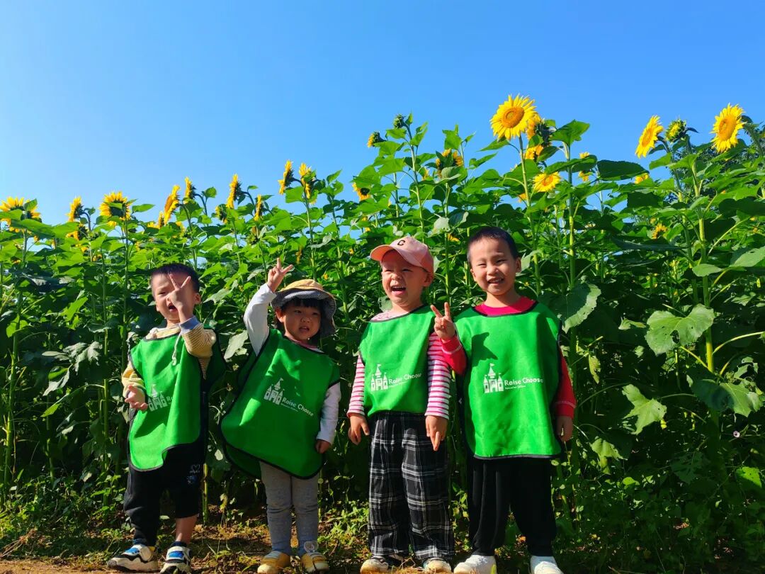 弘文幼儿园的孩子们正在向日葵花海上“森林课”。
