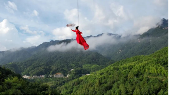 罗田「天堂寨」推出了“威亚飞仙”旅游项目,让游客身穿各种飘逸的古装、汉服凌空而起,在天堂寨优美的山林间飞舞,成为游客体验的新亮点。