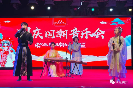 黄州「东坡外滩」乐声澎湃,人潮涌动。主舞台上,东方传统文化与潮流音乐相碰撞,国潮音乐LIVE秀用律动的节奏点燃全场,将传统艺术与现代艺术接轨。灯光变换间,美景汉服相辉映,挽发髻、戴朱钗,身着汉服的曼妙佳人迎风缓缓而来,国风汉服秀惊艳亮相,秀逸韵致的舞姿与厚重质朴的古城相映成趣,让前来的市民游客们大饱眼福,直呼过瘾。