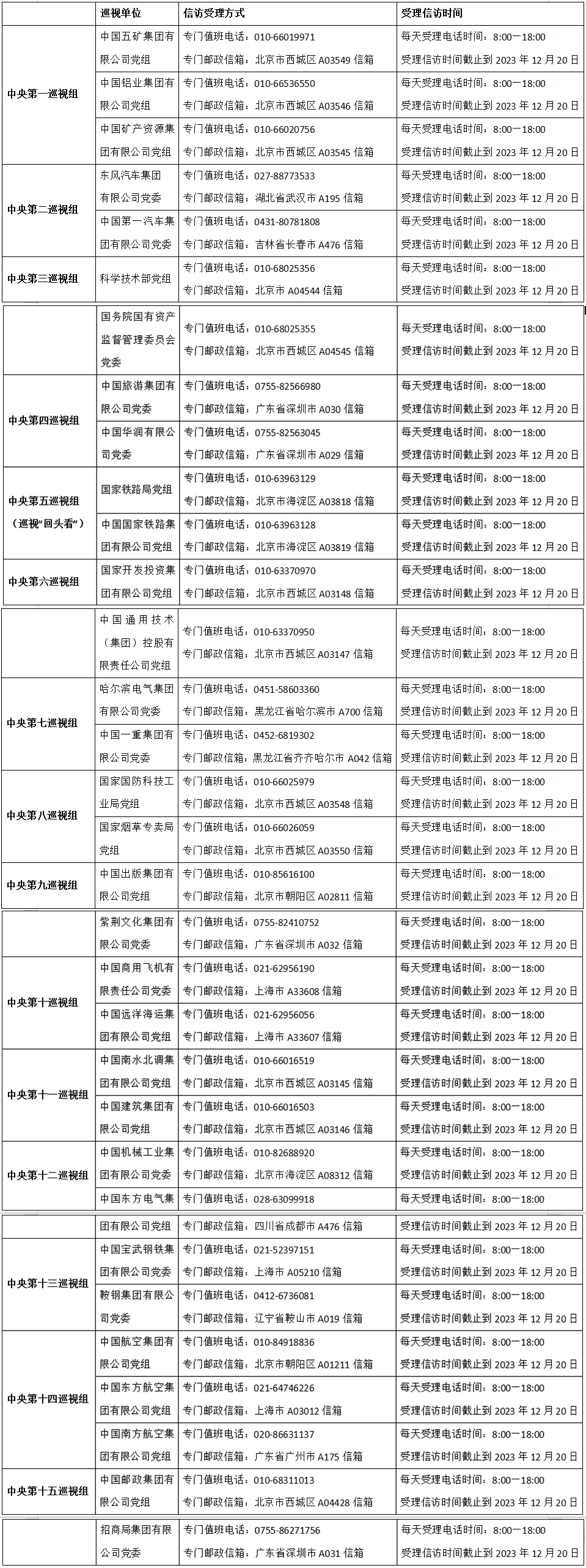 截至目前,二十届中央第二轮巡视已进驻32家单位,并公布了信访联系方式。