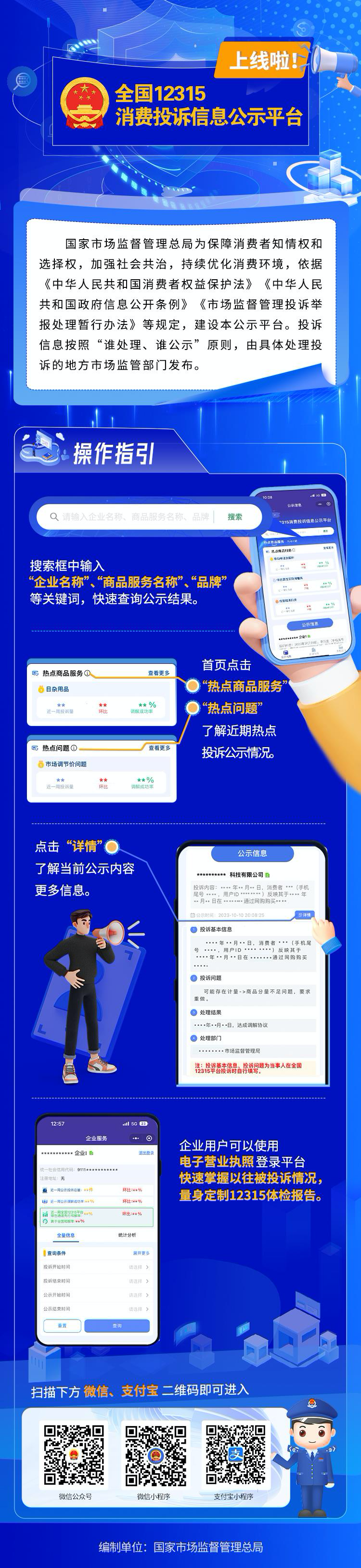 市场监管总局近日上线全国12315消费投诉信息公示平台。公众可查询特定商家投诉情况、掌握投诉热点、浏览本地最新投诉等信息。滑动可查看↓